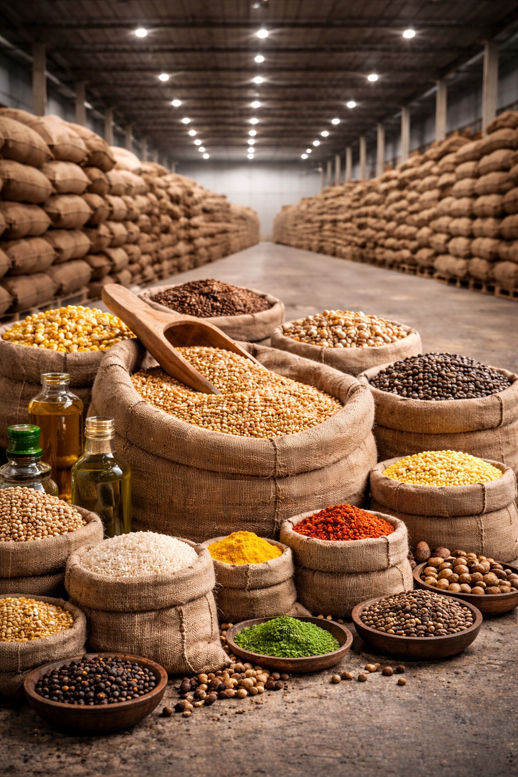 Grains, spices, oilseeds.